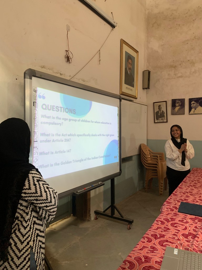 So far, we have worked with schools across Hyderabad, covering topics such as children’s rights, women’s rights, the Constitution of India, and Fundamental Rights.